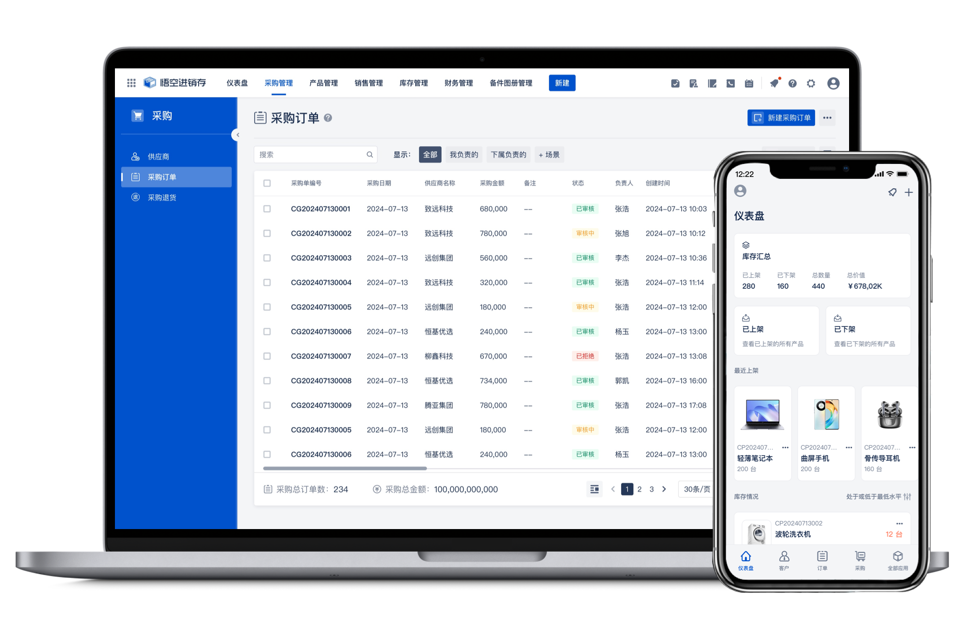 APP移动访问让您随时随地处理订单及采购数据。